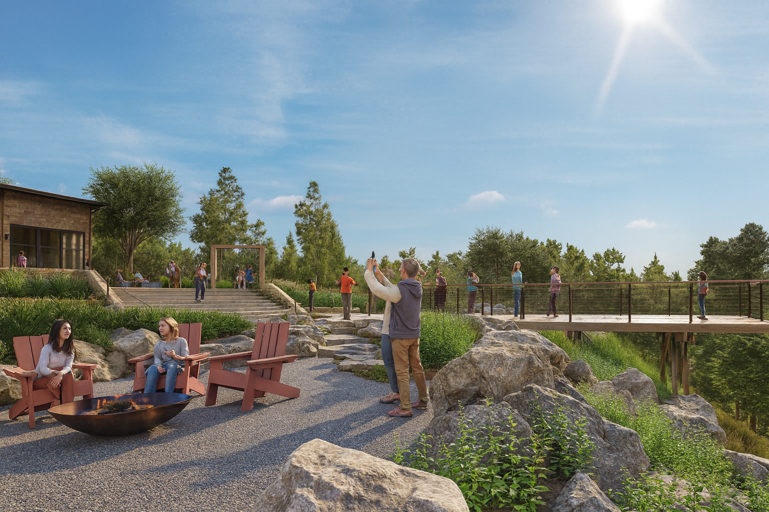 The pavilion serves as the heart of Jackson Ridge. Built for casual gatherings, weekend activities, and community events, it includes outdoor seating, green space, fire features, and areas designed for families to relax and spend time together.